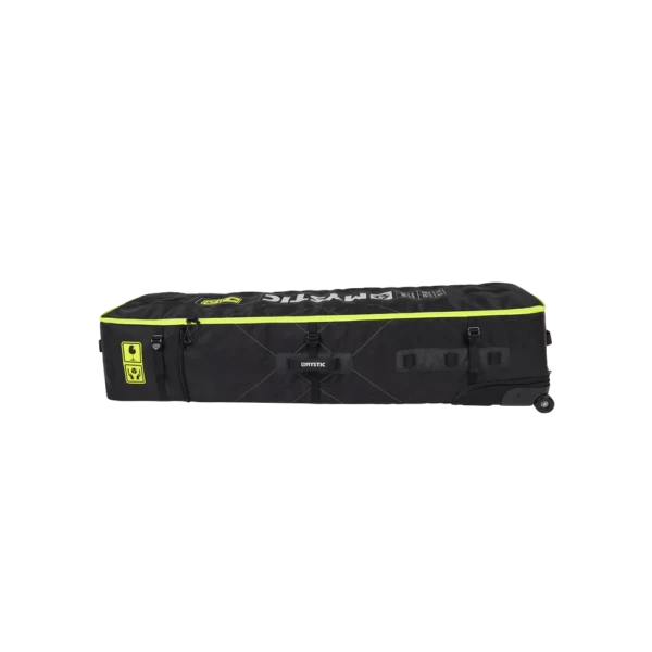 Want to make to most of your available kg’s? The Elevate square is our lightweight boardbag with detachable wheels to save even more weight when needed! The outside is constructed with HXcomb Shell Ultra, heavy duty tarpaulin on the inside combined with protectivepadding on the critical parts to keep your gear safe. It’s packed with extra features like the 3D mesh airvent, keep your gear fresh for when you did a last minute sesh before you hit the airport. Two transparent inner pockets for your screw and fins. When you’re back home it’s easily foldable to a small package for easy storage waiting on your next trip!